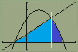 A = \( \int_{\text{a}}^{\text{b}} \)|f(x) - g(x)|dx